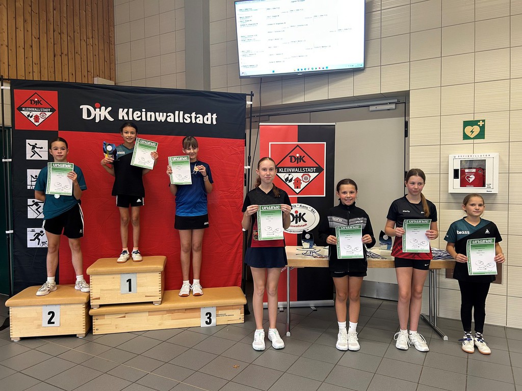 Im Endspiel stand sie dann der an Nr. 2 gesetzten Lina Klotz von der DJK Kleinkahl gegenüber. Gegen Klotz konnte sie bisher noch nie gewinnen. Auch hier verlor sie den ersten Satz mit 9:11, ehe dann die Sätze zwei bis vier mit 11:8, 11:3 und 11:9 gewonnen werden konnte. Glückstrahlend nahm sie die Siegertrophäe entgegen.